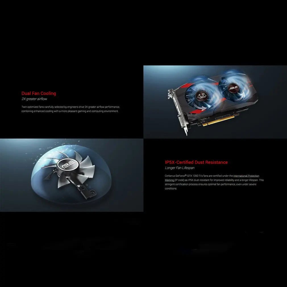 - Product name : ASUS ROG Strix GeForce GTX 1050 Ti 4GB GDDR5 Advanced Edition VR Ready DP HDMI DVI Gaming Graphics